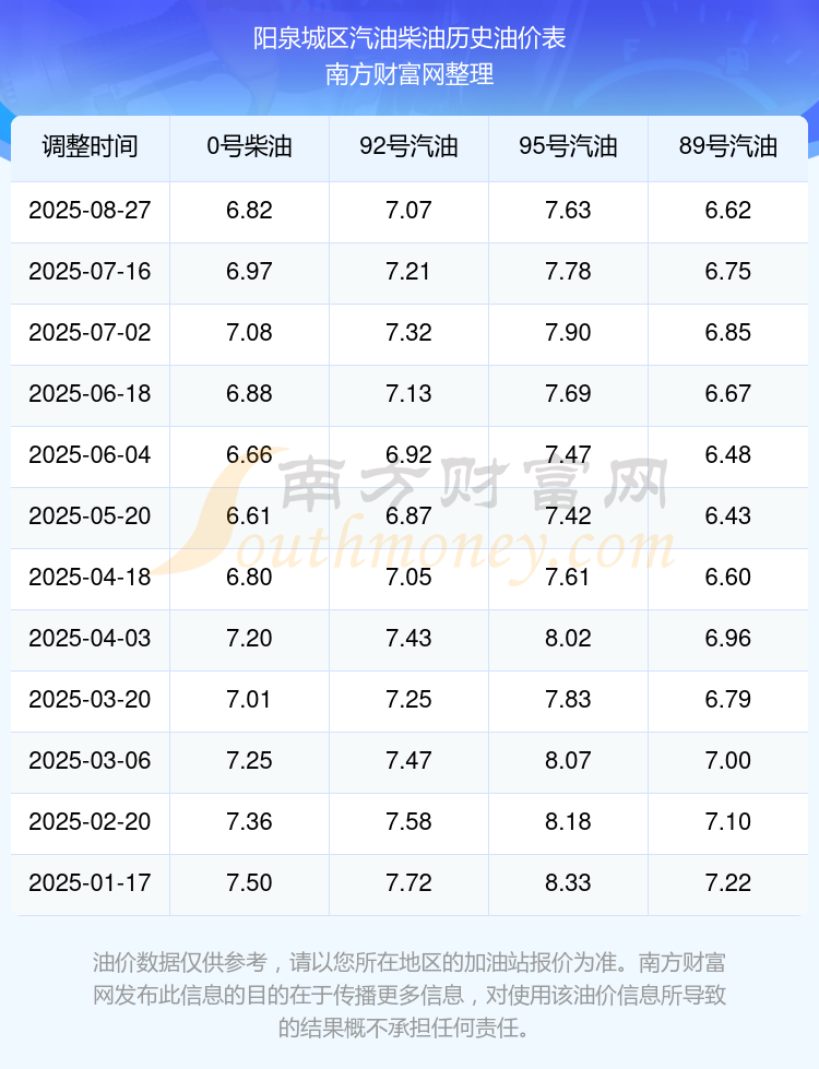 本站提供的油价数据仅供参考,具体数据以加油站报价为准。