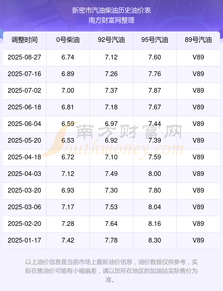 新密市汽油、柴油9月27日每升的价格具体是(8月27日调整后的价格):92号汽油7.12元;95号汽油7.6元;0号柴油6.74元。