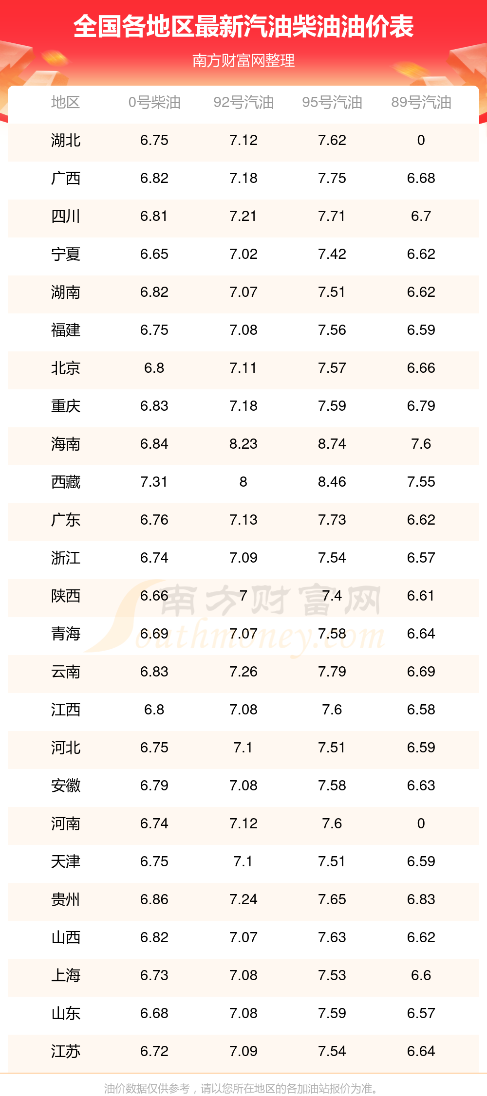 以上油价信息是当前市场上最新油价信息,油价数据仅供参考,实际在售油价可能有小幅偏差,请以您所在地区的加油站实际售价为准。