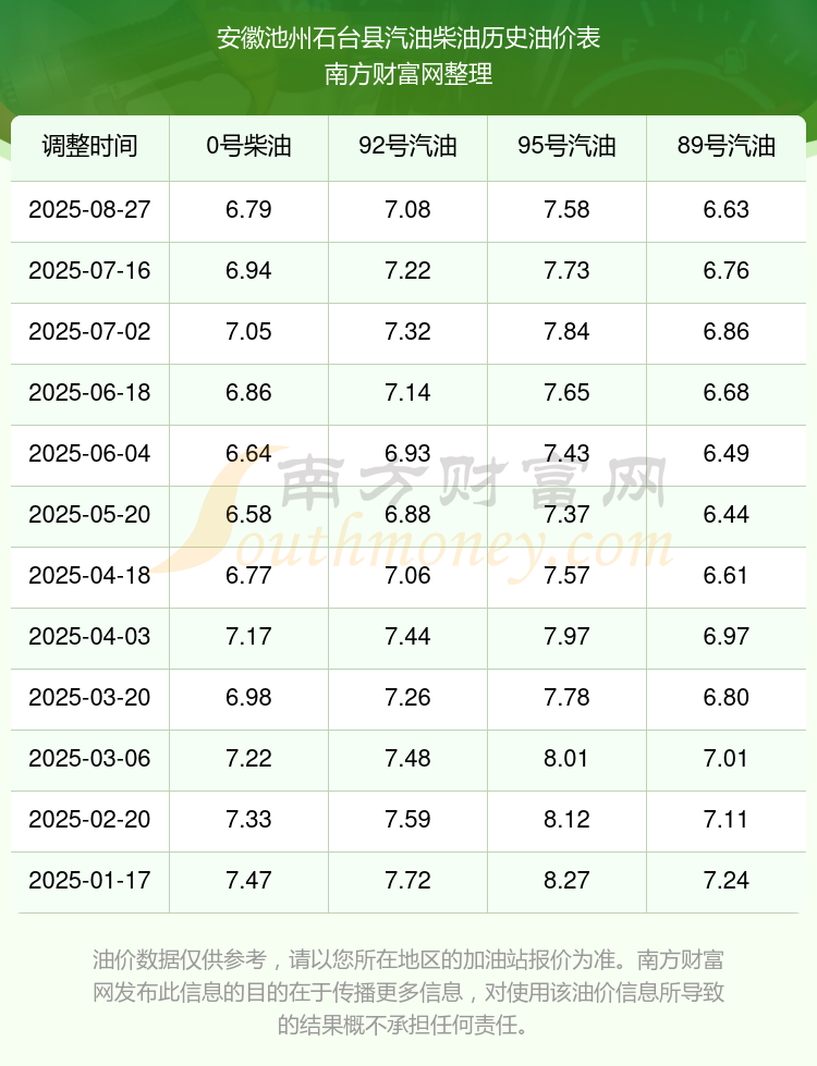 本站提供的油价数据仅供参考,具体数据以加油站报价为准。
