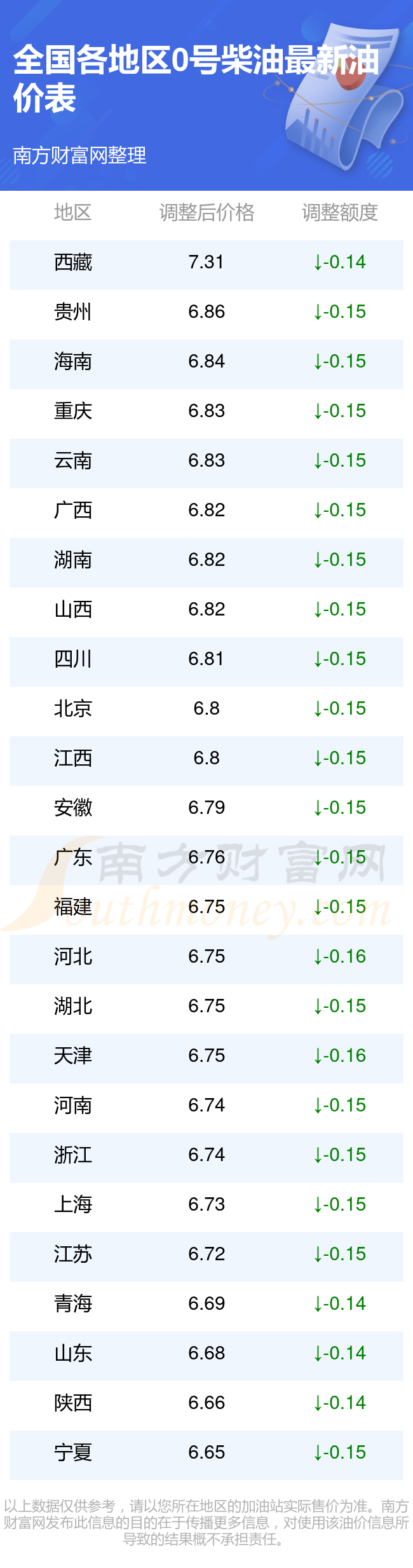 以上油价信息是当前市场上最新油价信息,油价数据仅供参考,实际在售油价可能有小幅偏差,请以您所在地区的加油站实际售价为准。