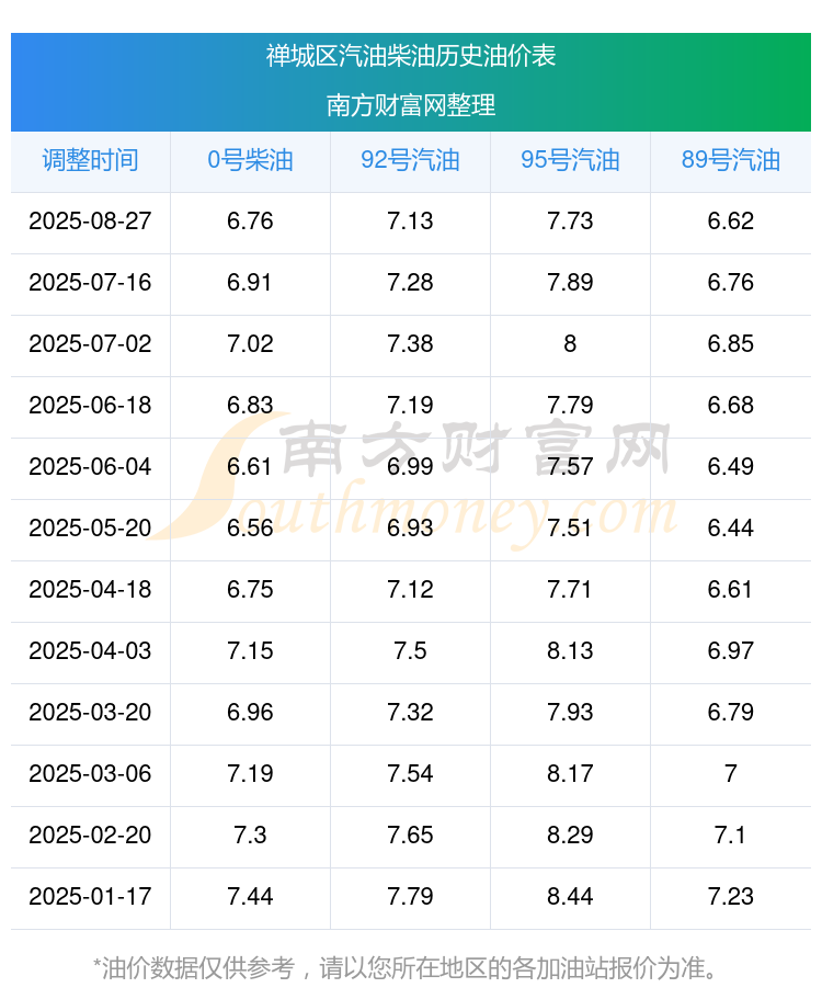 禅城区历史油价表