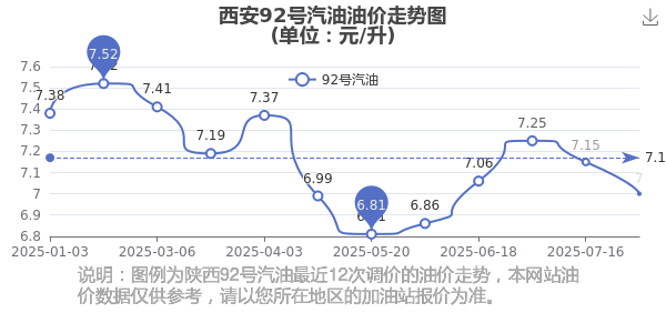西安92号汽油9月27日最新价格为8月27日油价调整后的价格,具体为7元/升,相对上次调整时间7月16日的油价7.15元每升,共下调了0.15元,下调2.098%。