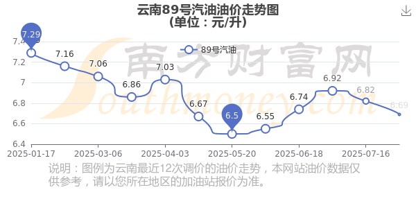 云南89号汽油9月27日价格为6.69元/升,调整时间为8月27日,相对上次调整下调了0.13元,下调1.906%。