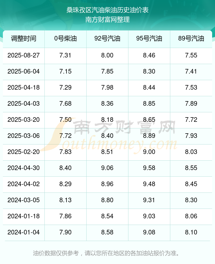 以上油价信息是当前市场上最新油价信息,油价数据仅供参考,实际在售油价可能有小幅偏差,请以您所在地区的加油站实际售价为准。