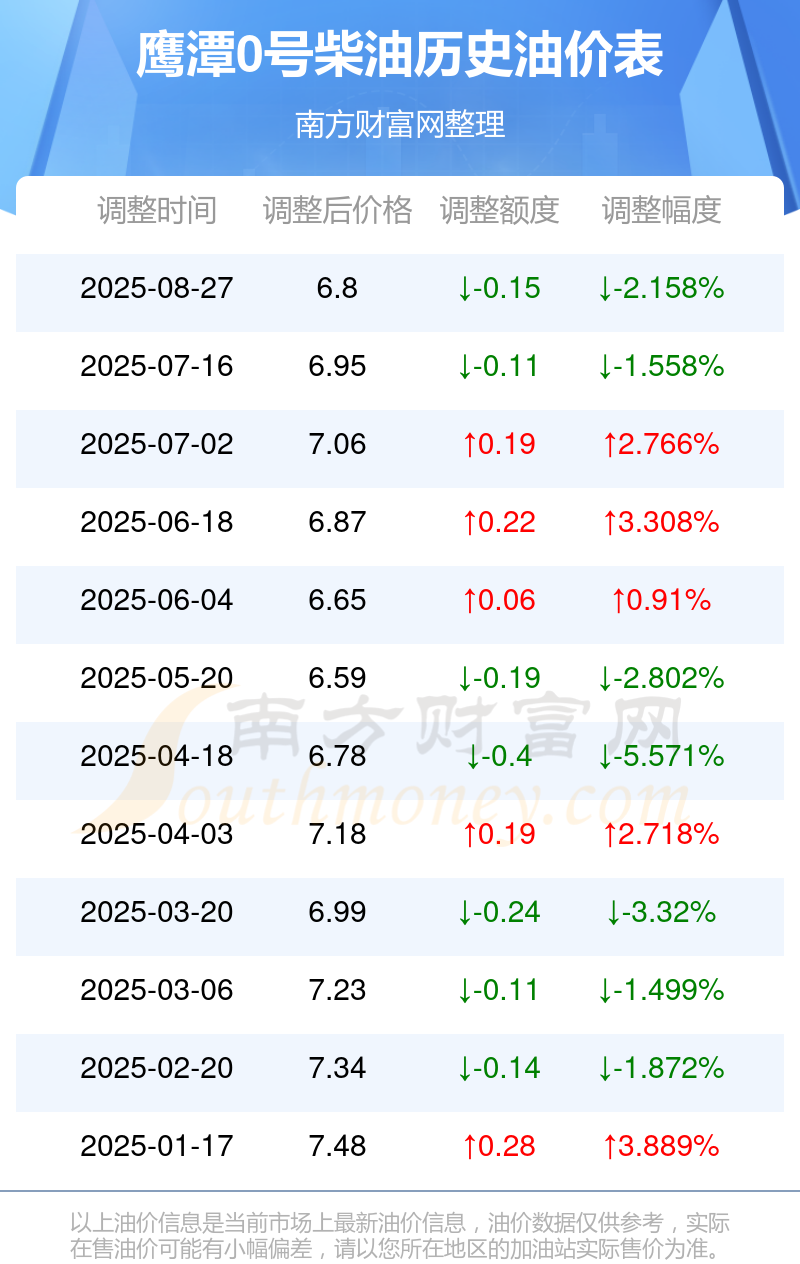 鹰潭0号柴油历史油价表