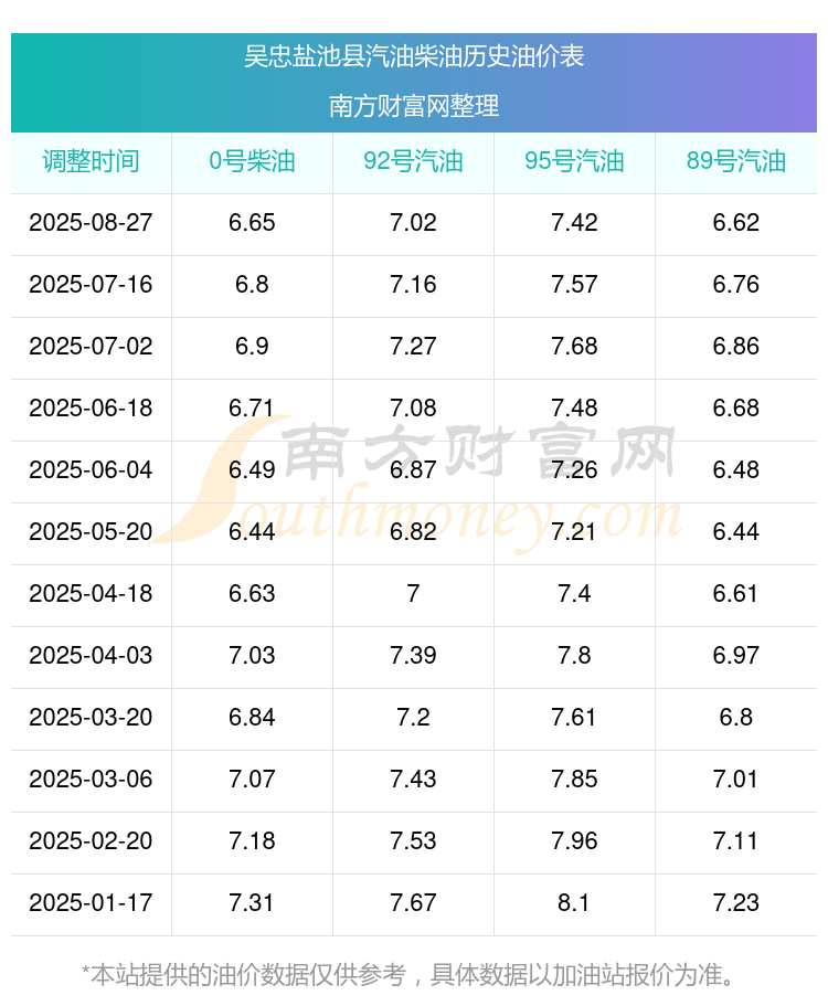 吴忠盐池县历史油价表