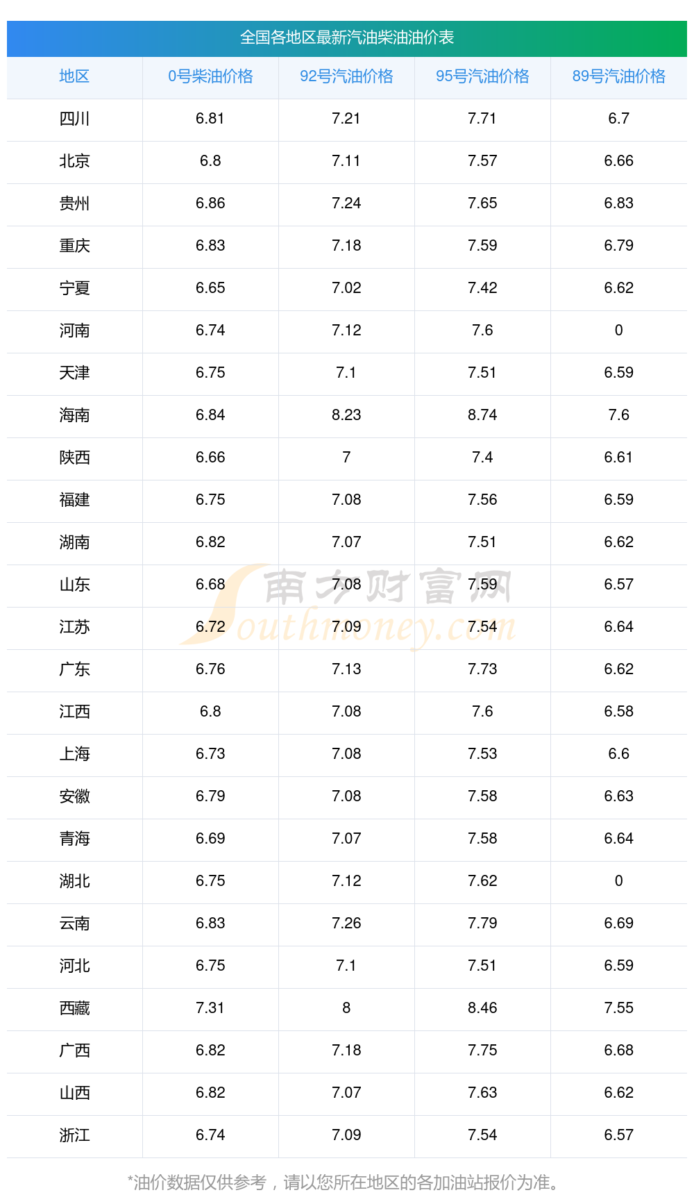 本站提供的油价数据仅供参考,具体数据以加油站报价为准。