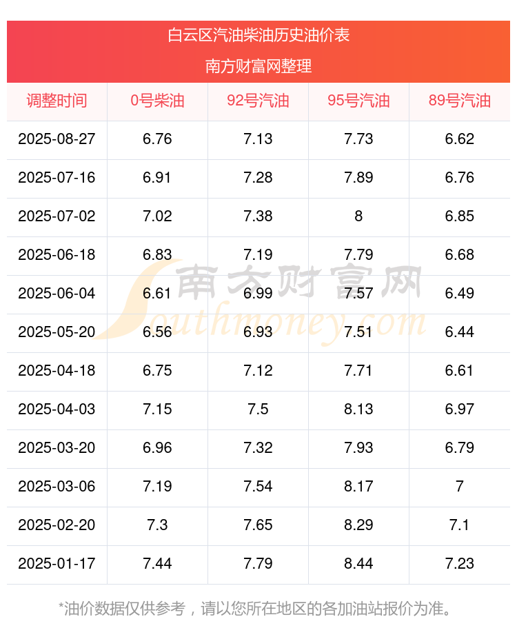 白云区历史油价表