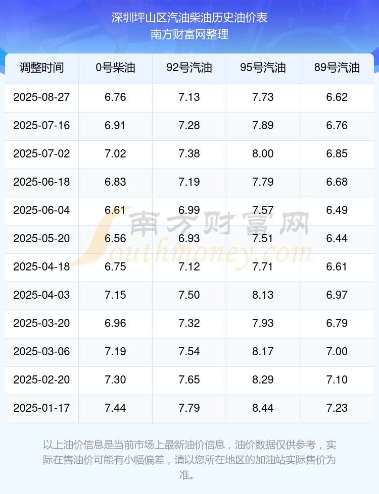 深圳坪山区历史油价表