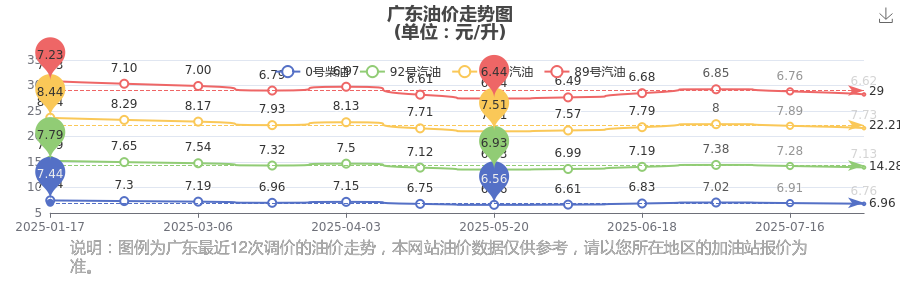 广东汽油柴油油价走势图