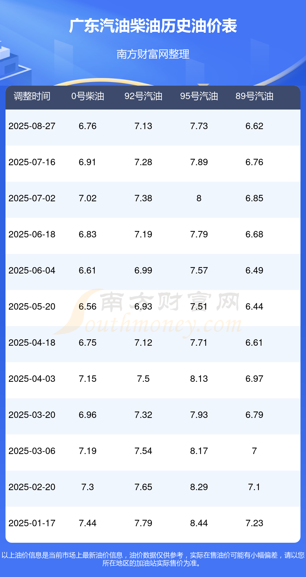 本站提供的油价数据仅供参考,具体数据以加油站报价为准。