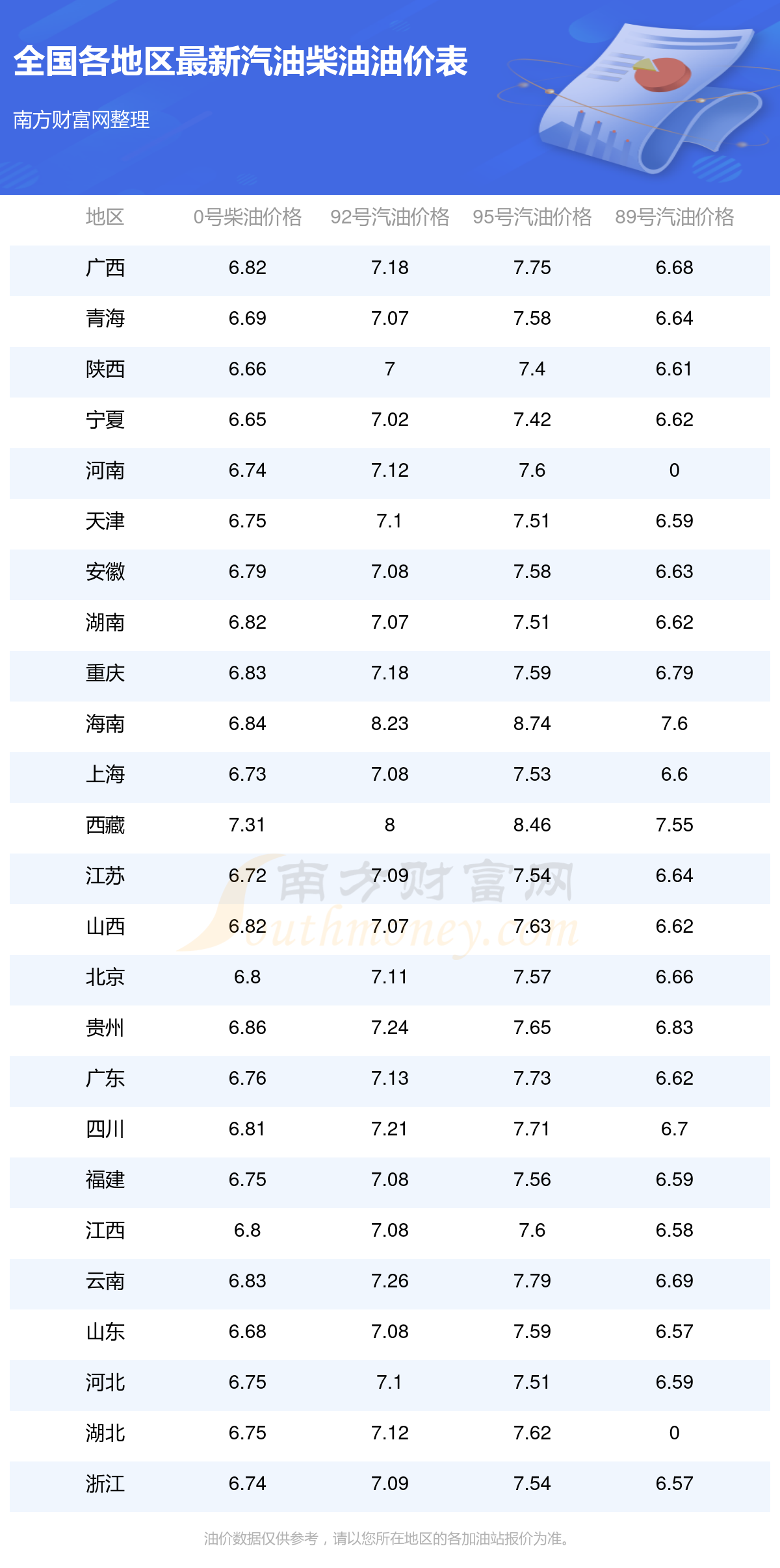 以上数据仅供参考,请以您所在地区的加油站实际售价为准。油价发布此信息的目的在于传播更多信息,对使用该油价信息所导致的结果概不承担责任。