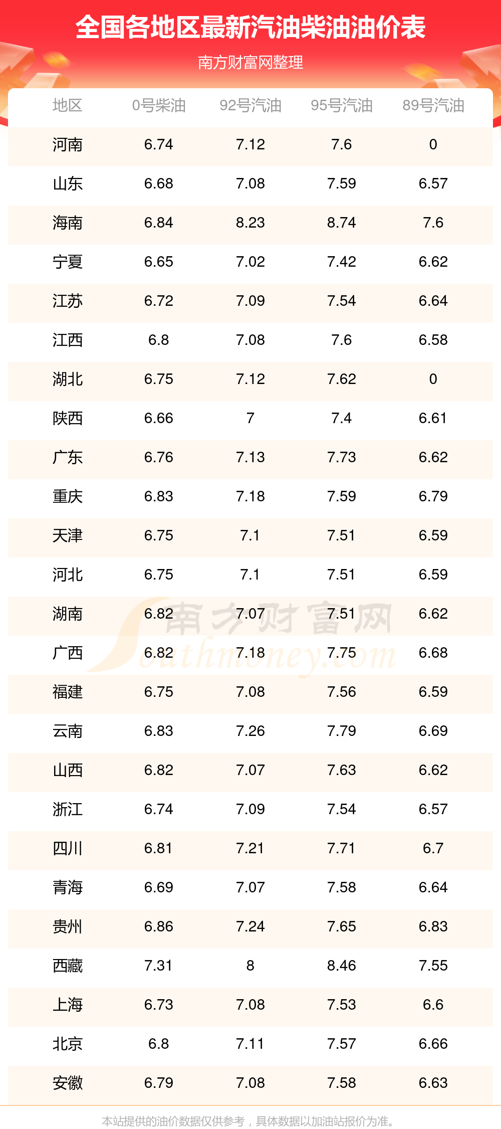 油价数据仅供参考,请以您所在地区的加油站报价为准。油价发布此信息的目的在于传播更多信息,对使用该油价信息所导致的结果概不承担任何责任。