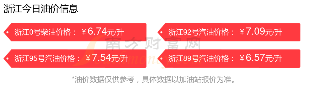 9月28日浙江汽油、柴油油价:本轮油价调整时间是8月27日,92号汽油7.09元,下跌了0.14元,下跌幅达1.94%;95号汽油7.54元,下跌了0.15元,下跌幅达1.95%;89号汽油6.57元,下跌了0.13元,下跌幅达1.94%;0号柴油6.74元,下跌了0.15元,下跌幅达2.18%。