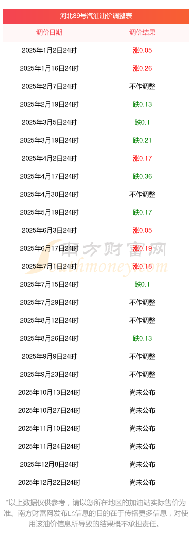9月28日,河北89号汽油的价格是6.59元每升,本次的调整时间为8月27日,对比上次的调整下调了0.13元,下调1.935%,10月13日24时为下一轮油价调整时间,还有15.96天。