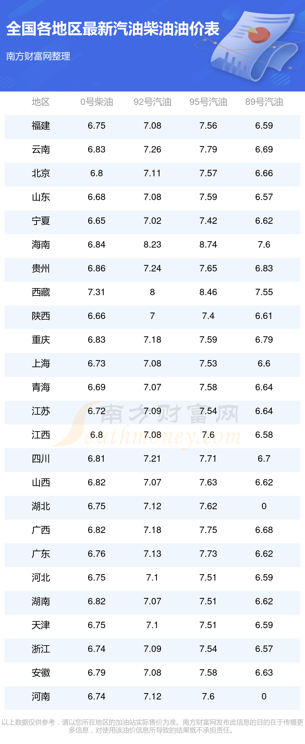 本站提供的油价数据仅供参考,具体数据以加油站报价为准。