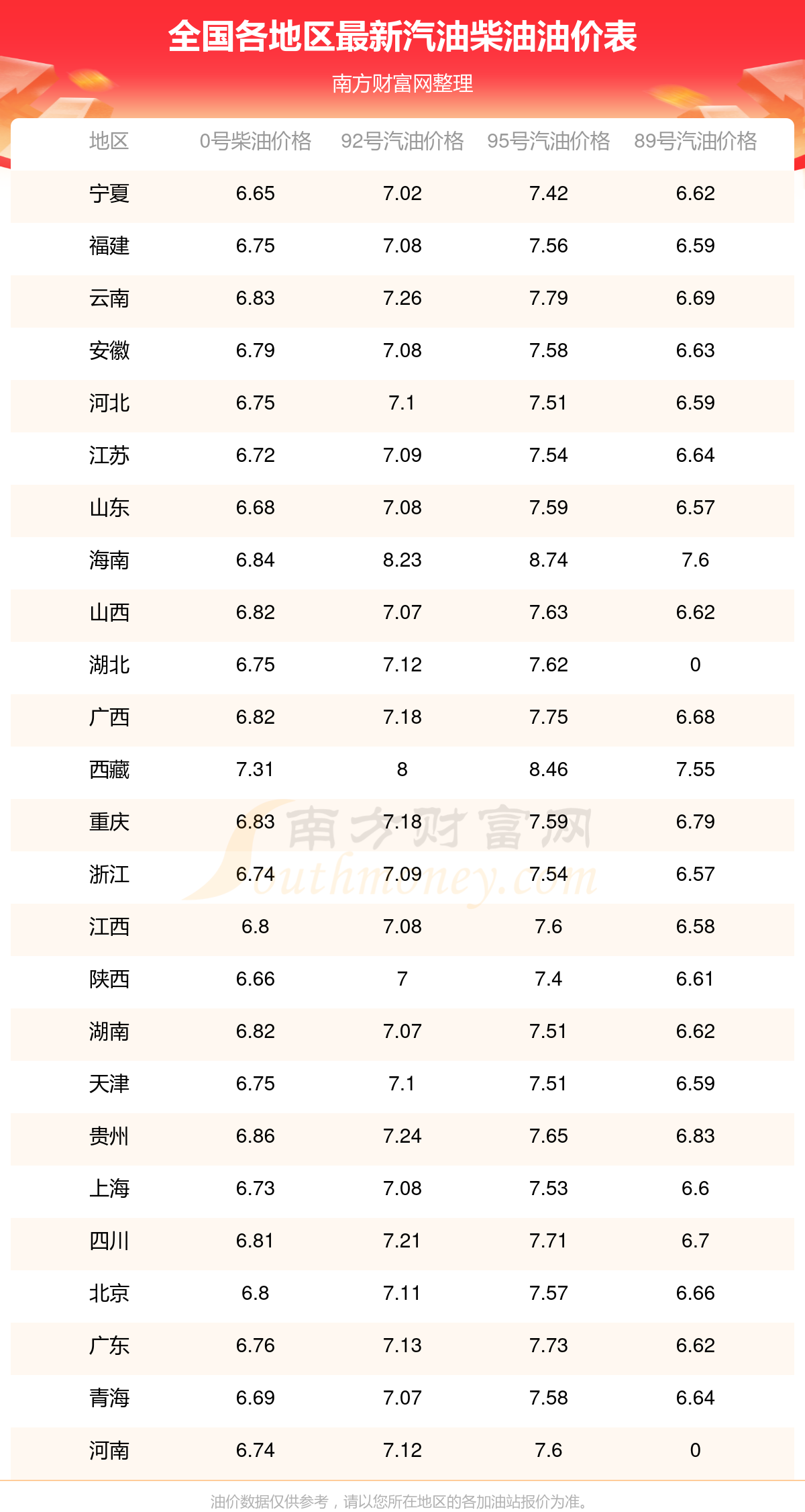 本站提供的油价数据仅供参考,具体数据以加油站报价为准。