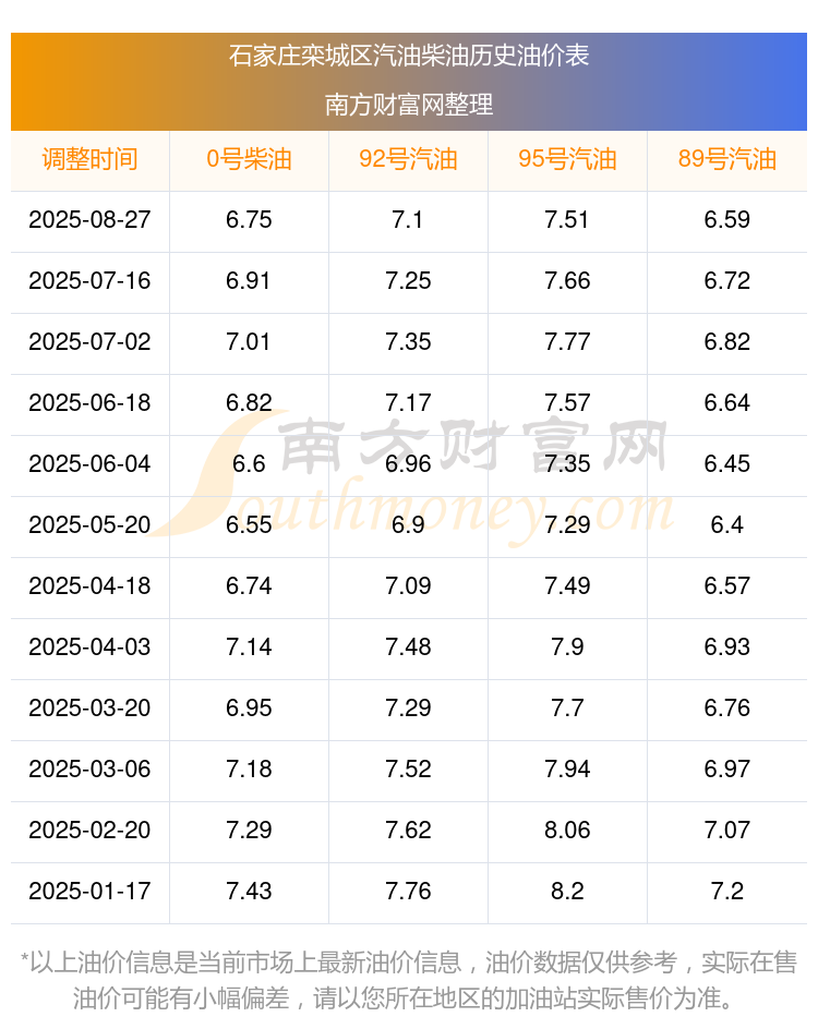 石家庄栾城区历史油价表
