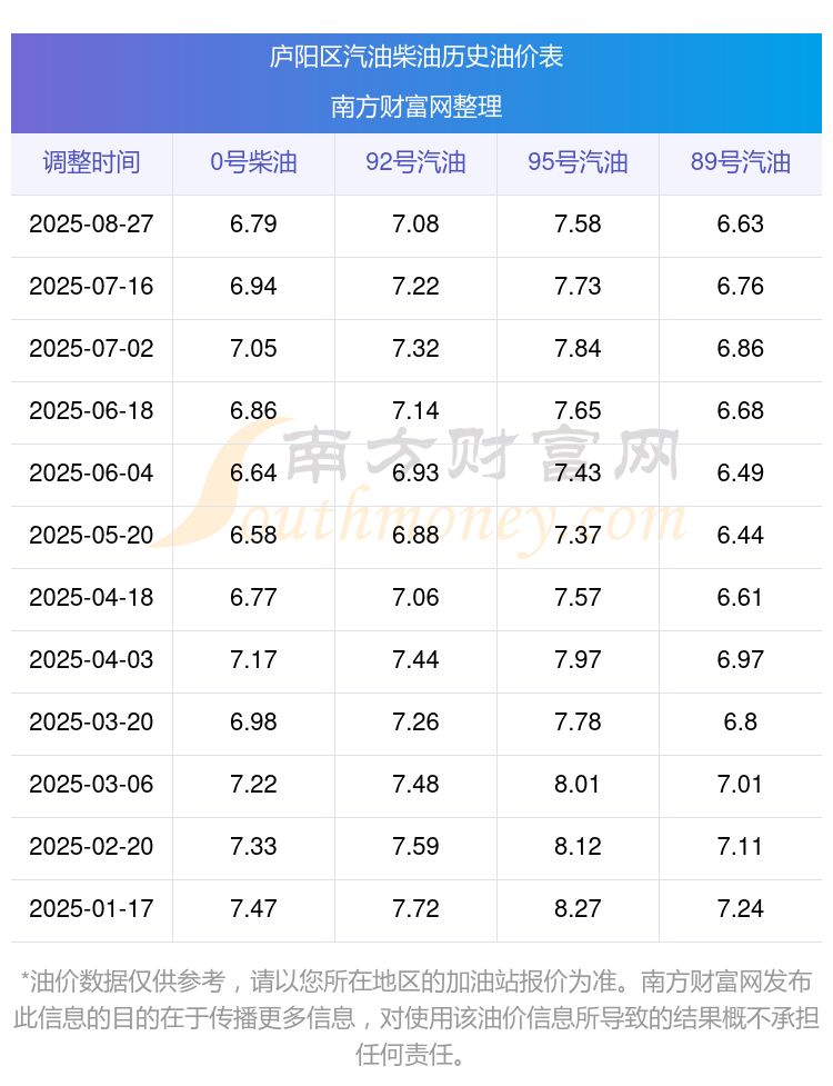 庐阳区历史油价表