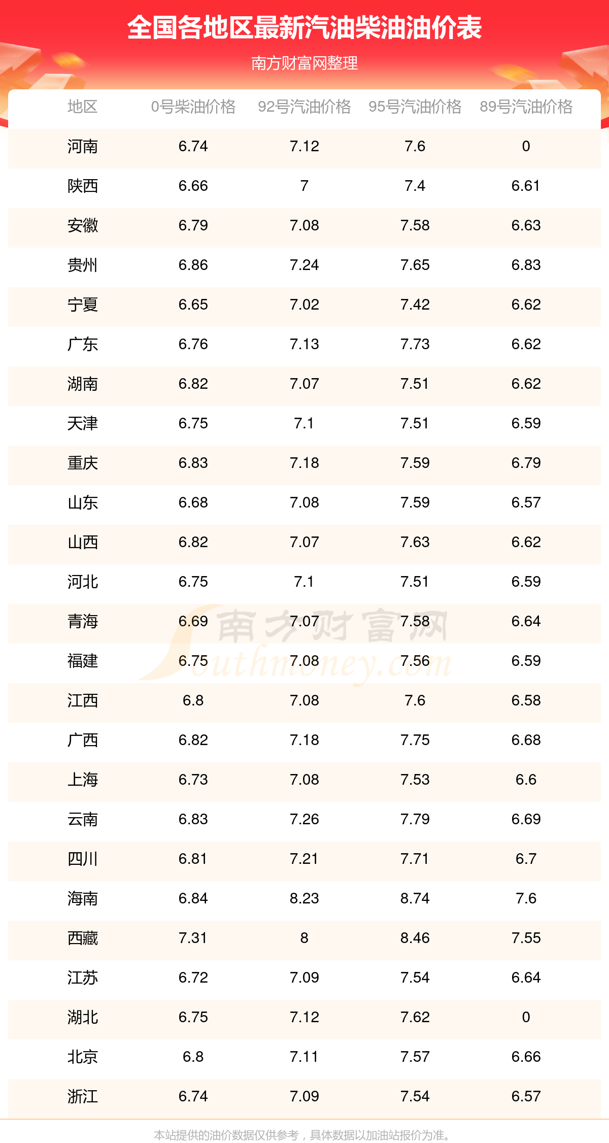 以上数据仅供参考,请以您所在地区的加油站实际售价为准。油价发布此信息的目的在于传播更多信息,对使用该油价信息所导致的结果概不承担责任。
