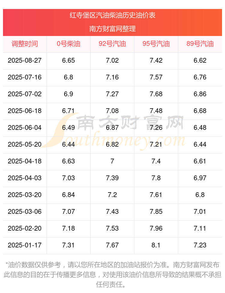 红寺堡区汽油、柴油9月28日每升的价格具体是(8月27日调整后的价格):92号汽油7.02元;95号汽油7.42元;89号汽油6.62元;0号柴油6.65元。