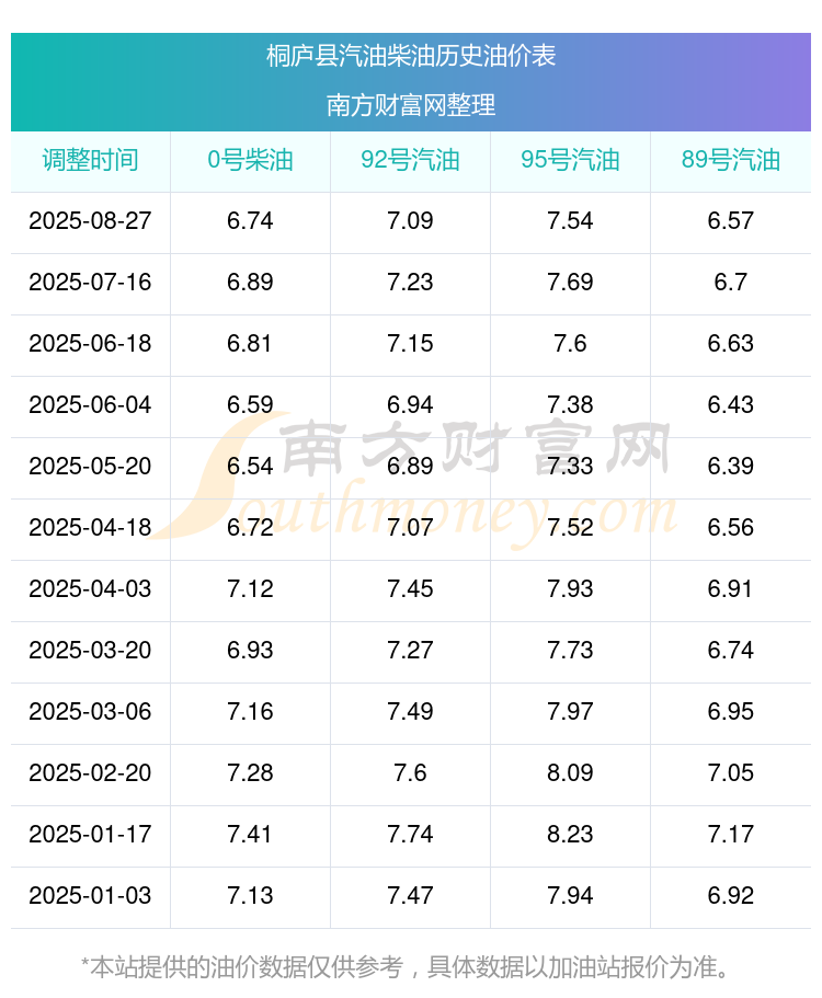 桐庐县历史油价表