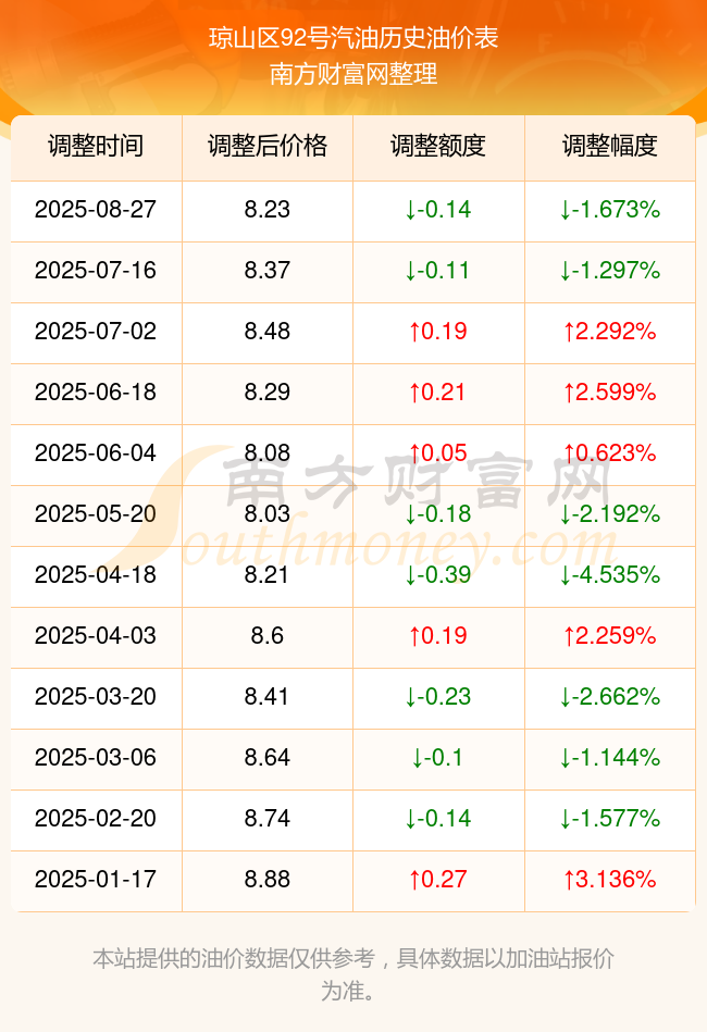 琼山区92号汽油历史油价表