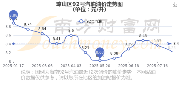 琼山区92号汽油历史油价走势图