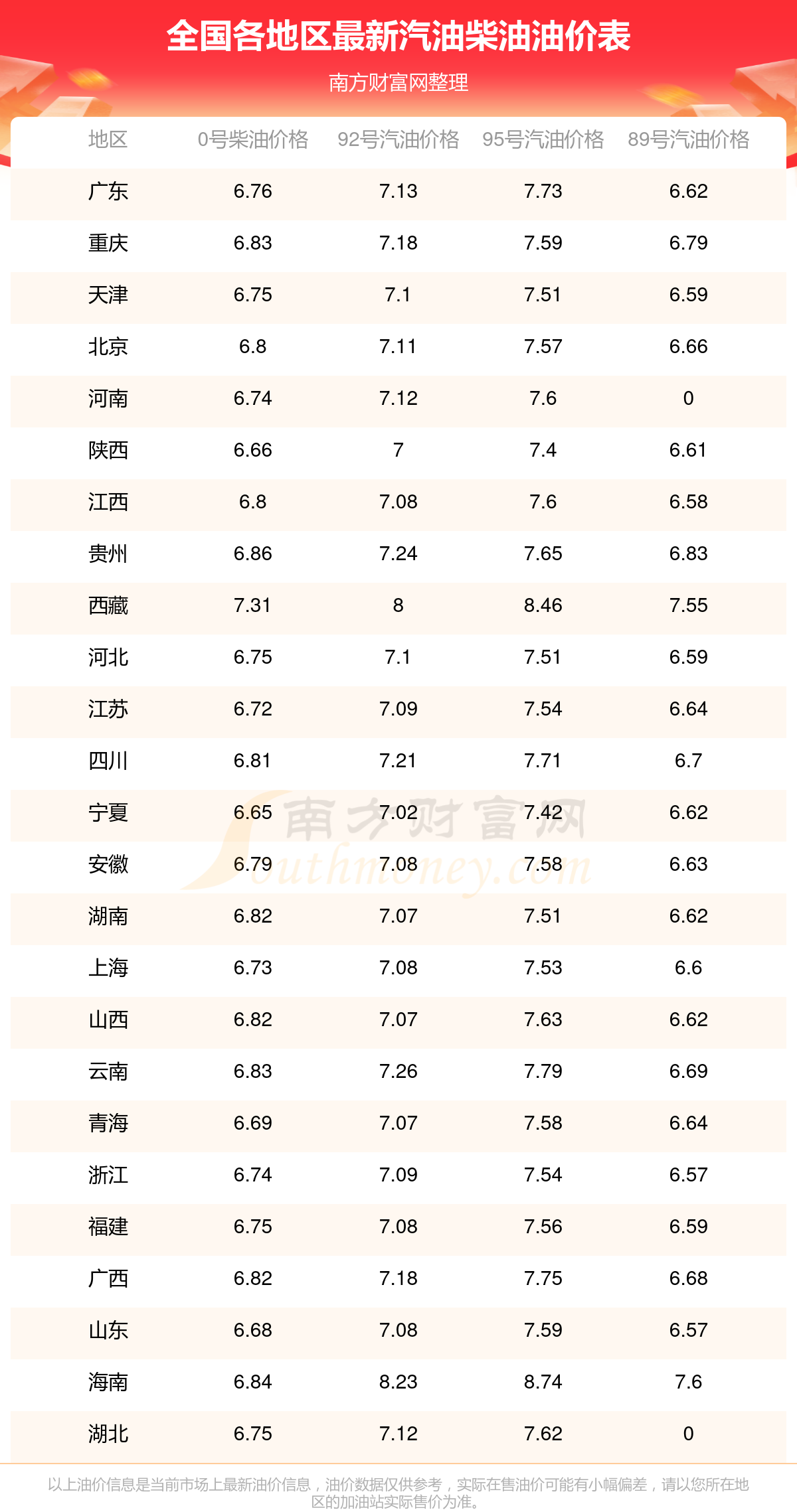 油价数据仅供参考,请以您所在地区的加油站报价为准。油价发布此信息的目的在于传播更多信息,对使用该油价信息所导致的结果概不承担任何责任。