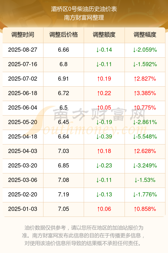 灞桥区0号柴油历史油价表