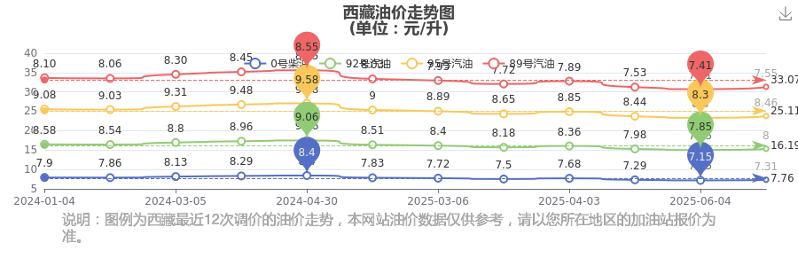 西藏汽油柴油油价走势图