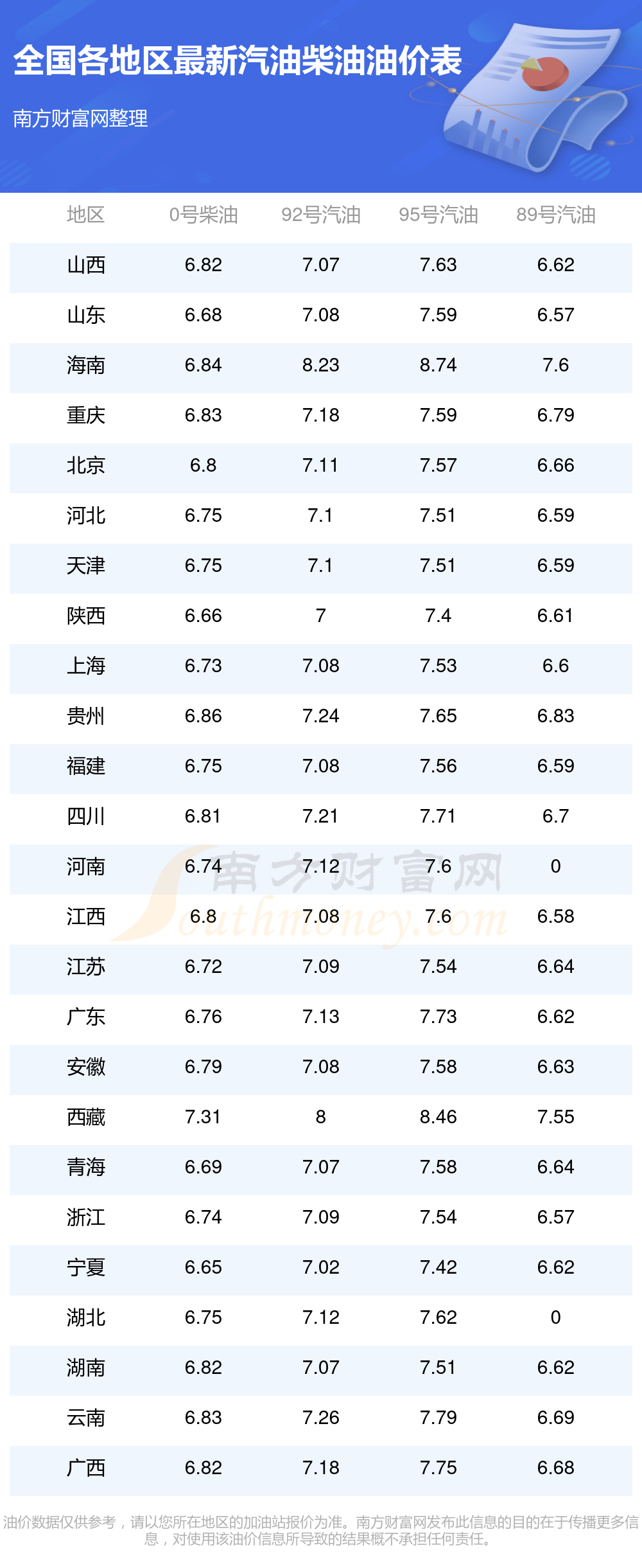 本站提供的油价数据仅供参考,具体数据以加油站报价为准。