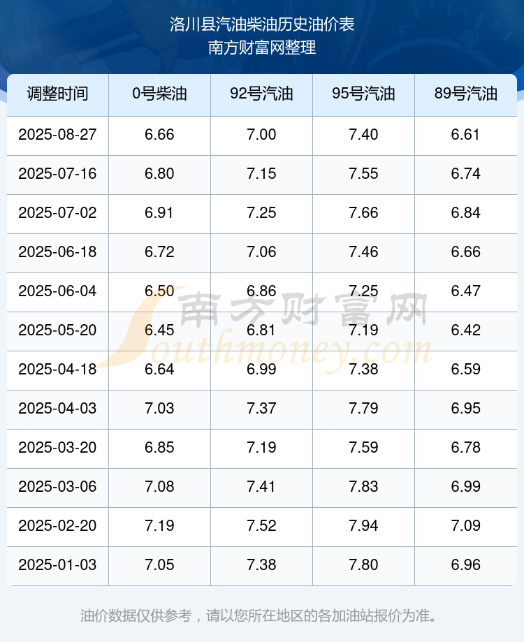 油价数据仅供参考,请以您所在地区的各加油站报价为准。
