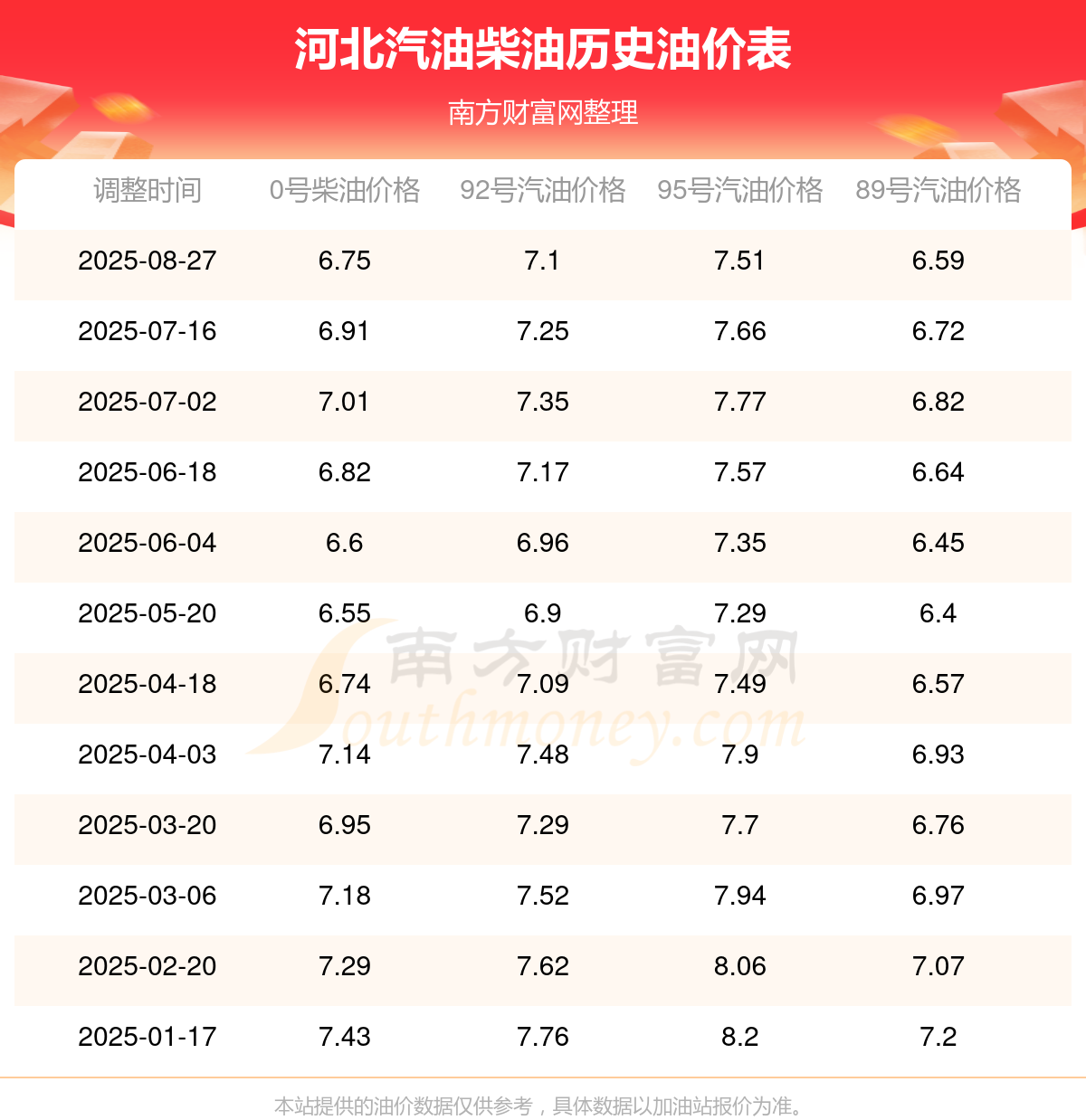 9月30日,河北0号柴油的价格是6.75元每升,本次的调整时间为8月27日,对比上次的调整降了0.16元,降2.315%,下次调整时间为10月13日24时,还有13.96天。