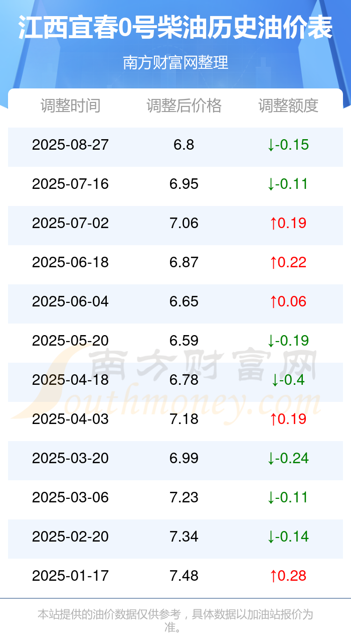 江西宜春0号柴油历史油价表