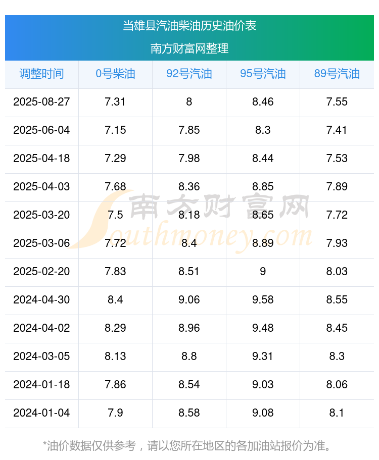 当雄县历史油价表