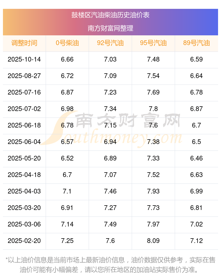 鼓楼区今日油价_10月14日92号、95号汽油价格(多少钱一升)