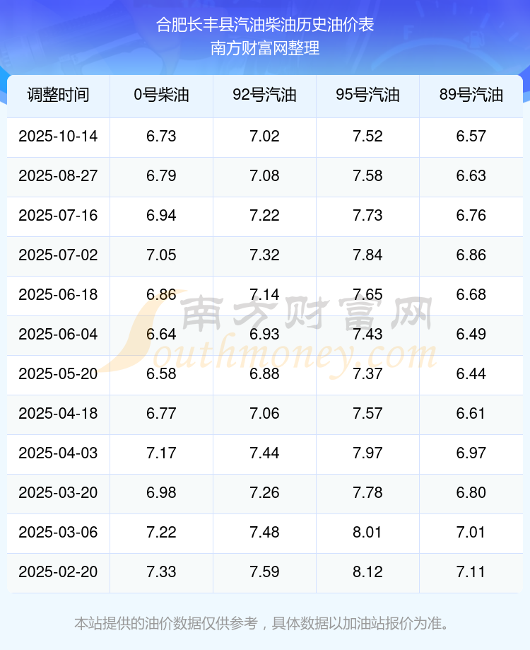 今日合肥长丰县油价,合肥长丰县汽油价格查询(10月14日)