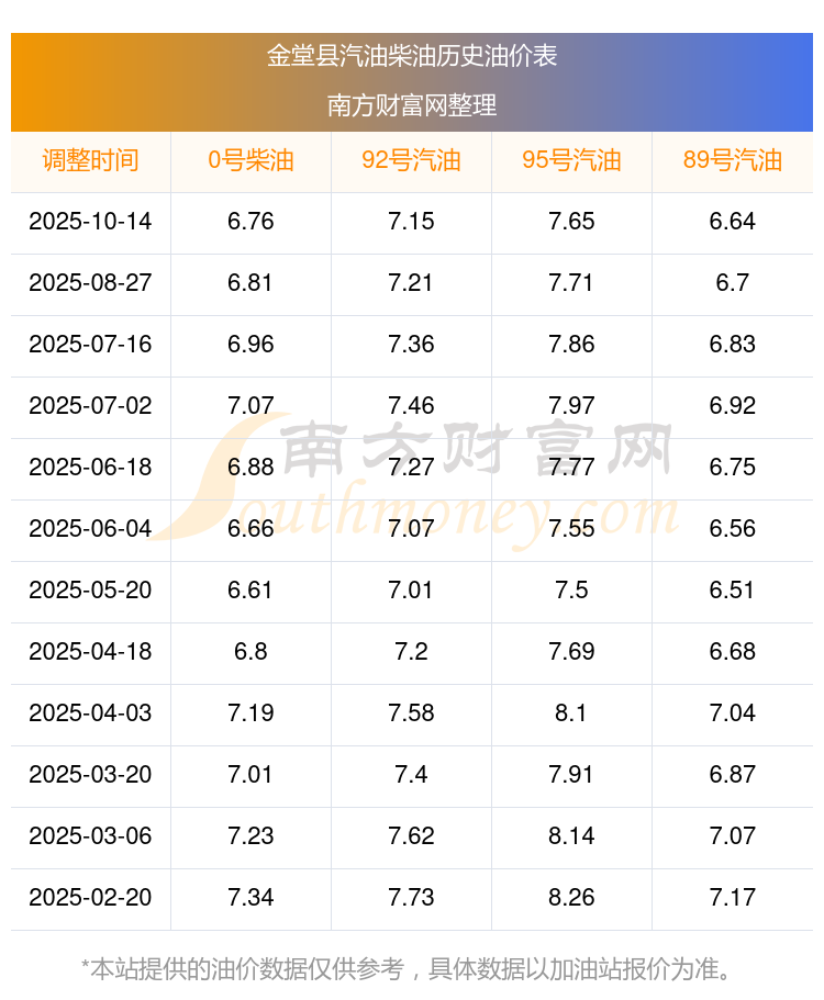 今日金堂县油价查询(10月14日92号、95号汽油价格一览)