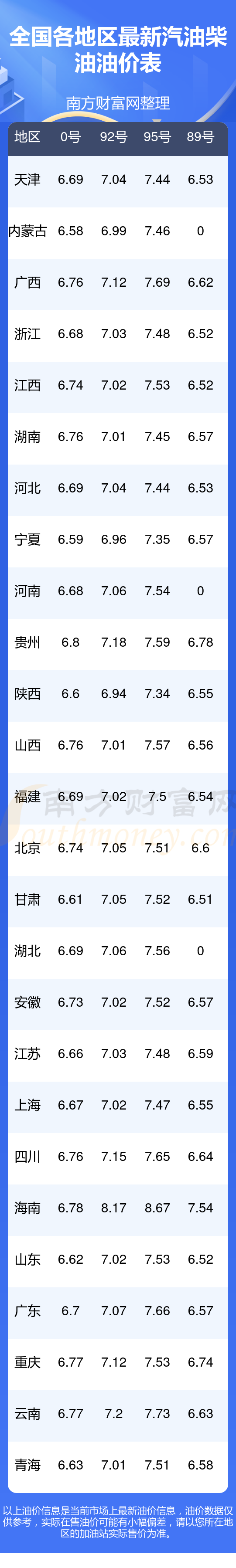 本站提供的油价数据仅供参考,具体数据以加油站报价为准。