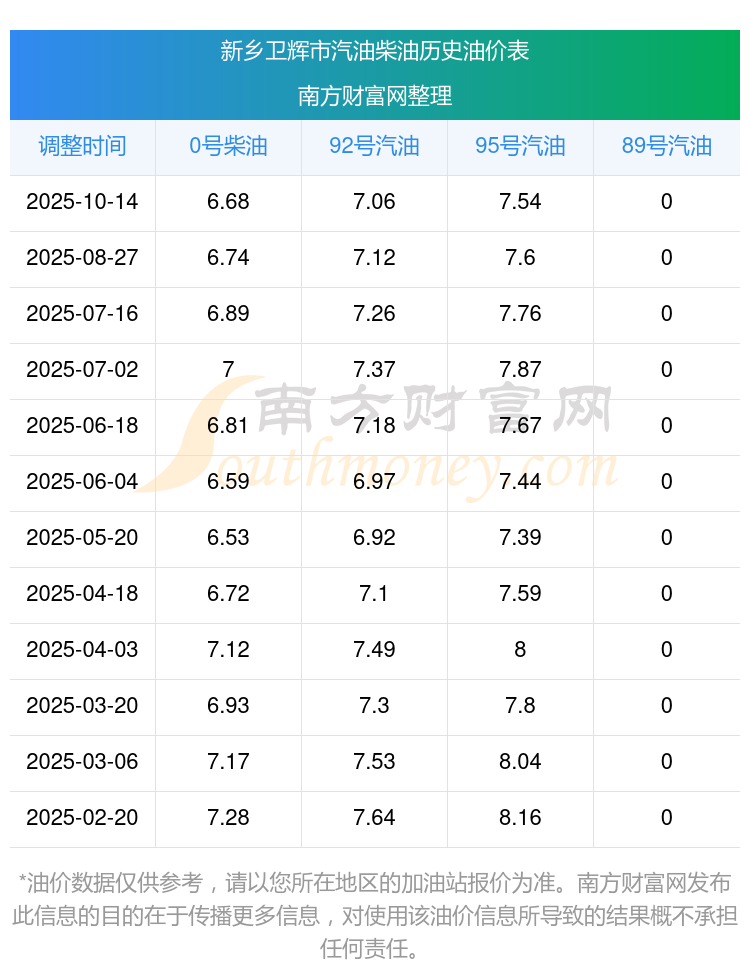 今日油价查询_新乡卫辉市汽油柴油价格一览表(10月14日)