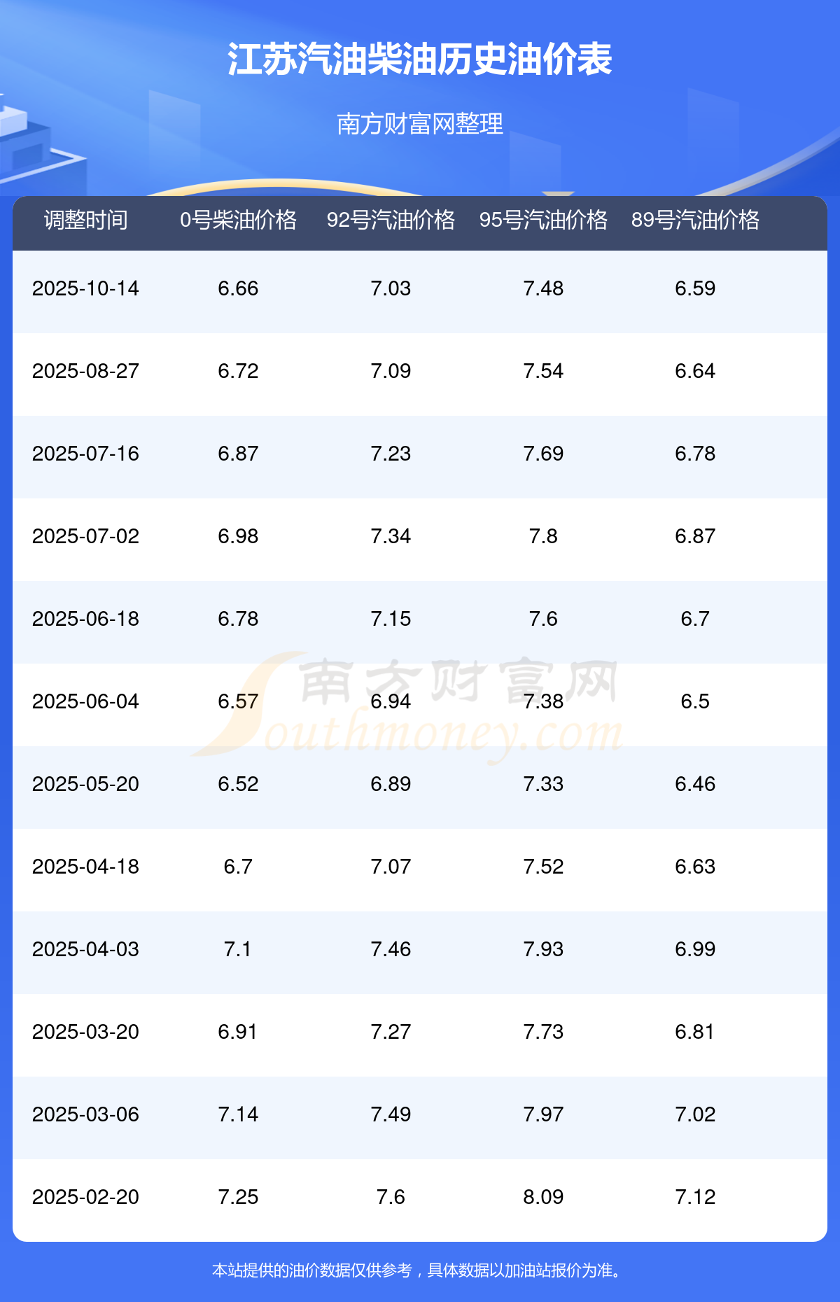 江苏油价0号柴油(10月14日)(附油价调整时间表)