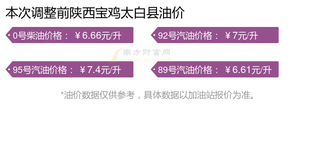 今日油价查询|10月14日陕西宝鸡太白县汽油柴油价格一览表