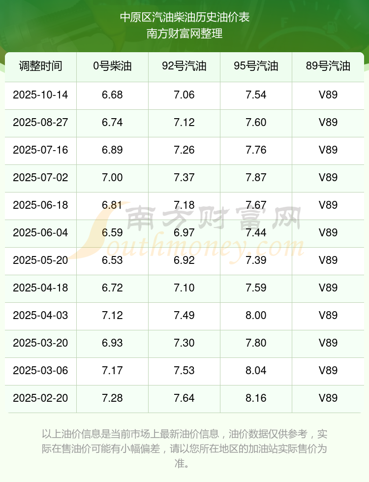 中原区今日油价_10月14日中原区汽油多少钱一升?