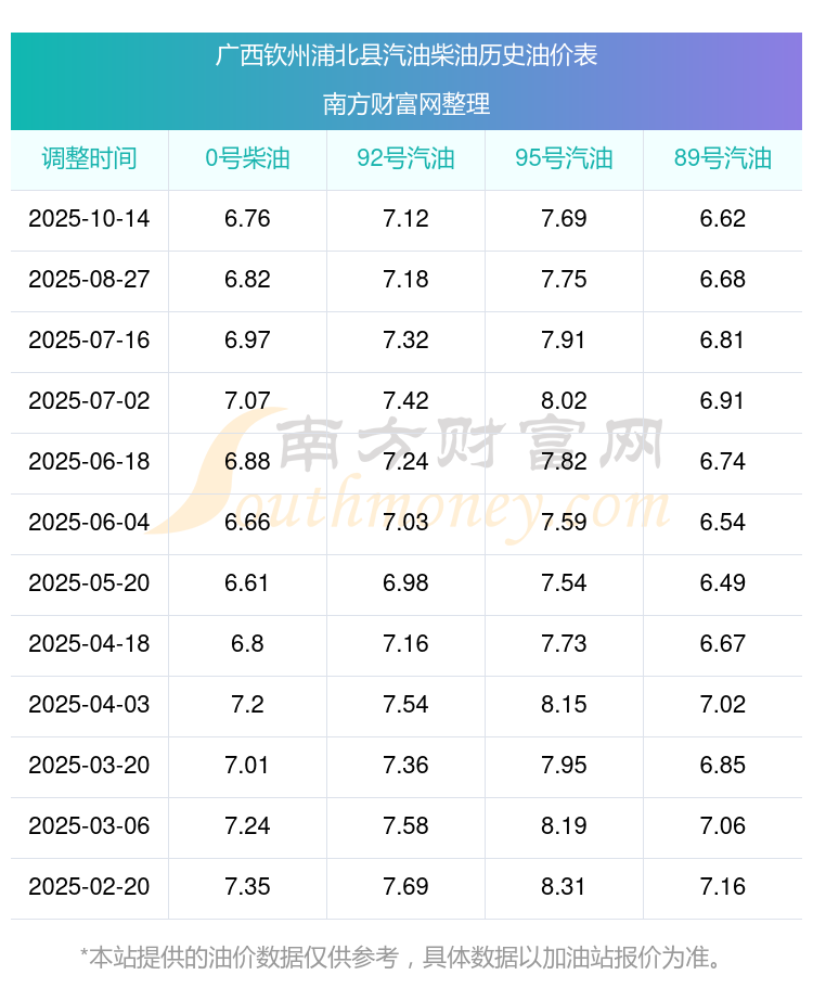 广西钦州浦北县油价今天多少钱一升_10月14日汽油价格多少