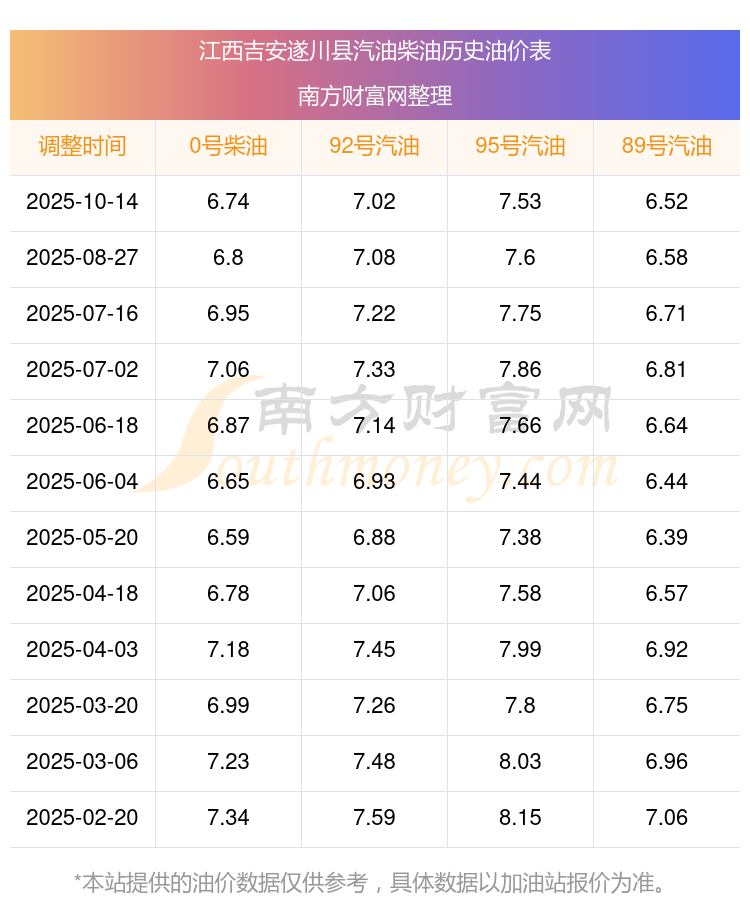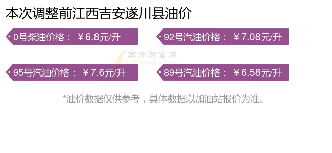 江西吉安遂川县今日油价查询_10月14日江西吉安遂川县汽油价格一览表