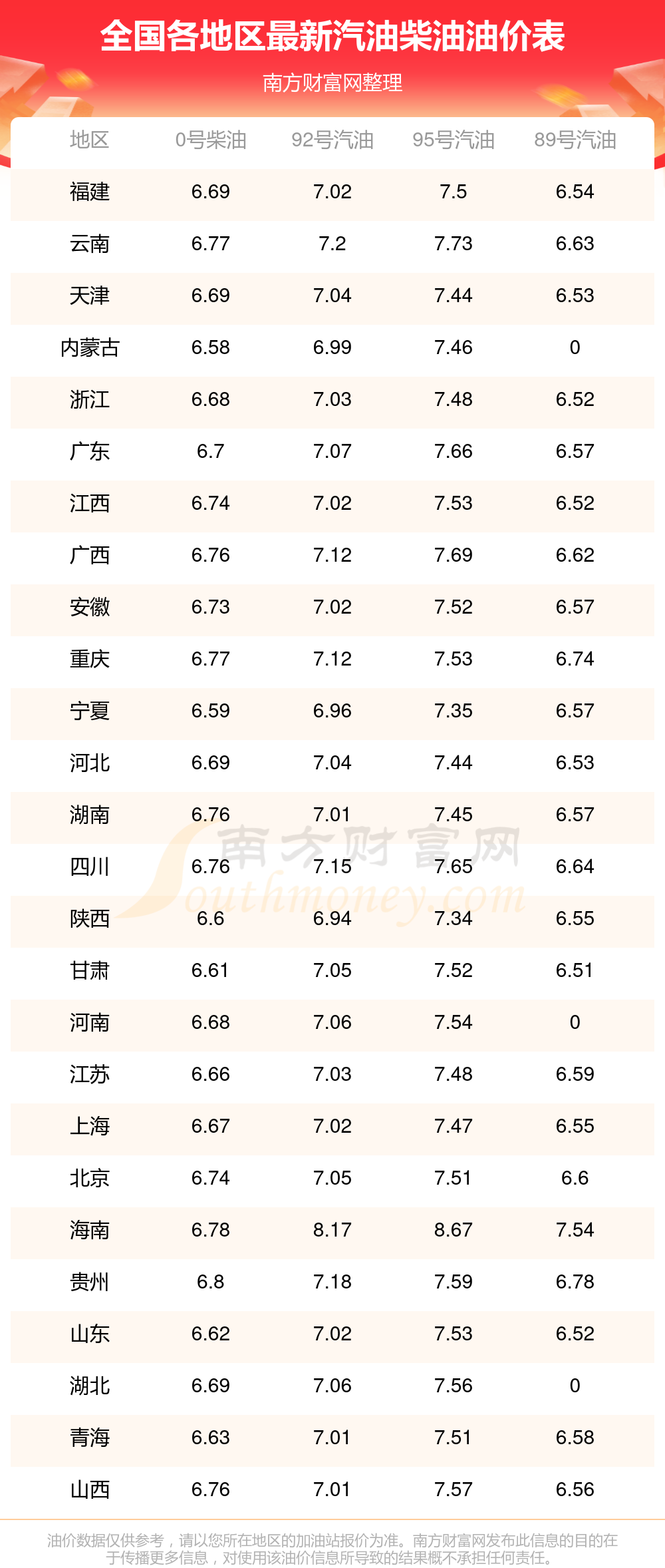 油价数据仅供参考,请以您所在地区的加油站报价为准。油价发布此信息的目的在于传播更多信息,对使用该油价信息所导致的结果概不承担任何责任。