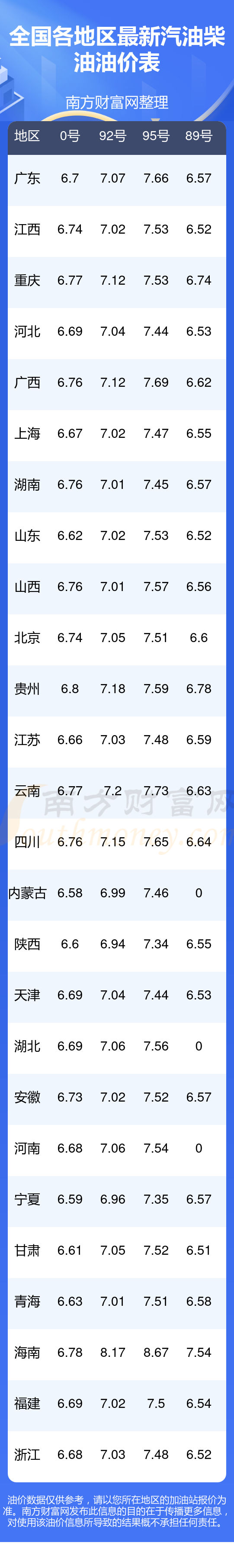 以上数据仅供参考,请以您所在地区的加油站实际售价为准。油价发布此信息的目的在于传播更多信息,对使用该油价信息所导致的结果概不承担责任。