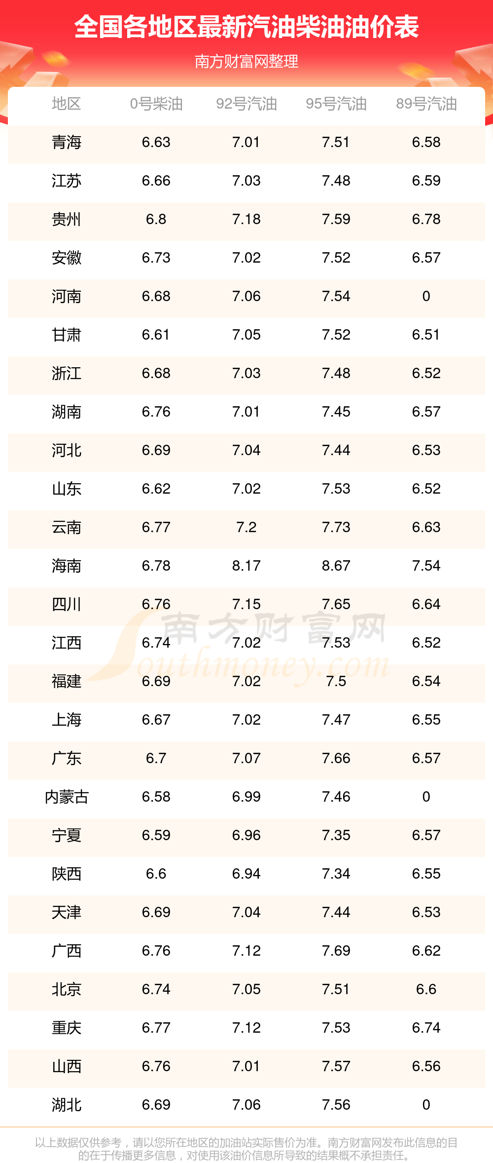 油价数据仅供参考,请以您所在地区的各加油站报价为准。